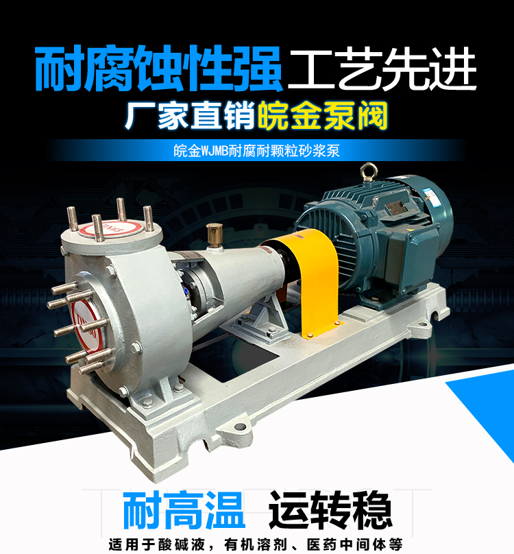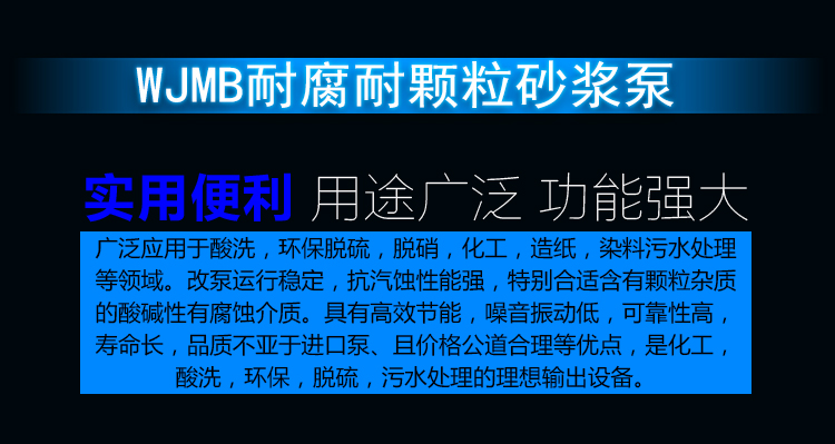 WJMB耐腐耐顆粒夾板式砂漿泵可靠厚實,外面鑲包金屬夾套,結構牢固,運行穩定,且能有效解決長期室外運行造成的塑料模壓件老化等不利影響。過流部件采用耐腐耐磨的UHM-WPE,PVD